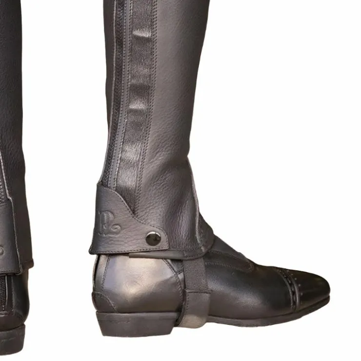 • Un élastique passant sous les boots assure la stabilité de la mini-chaps.