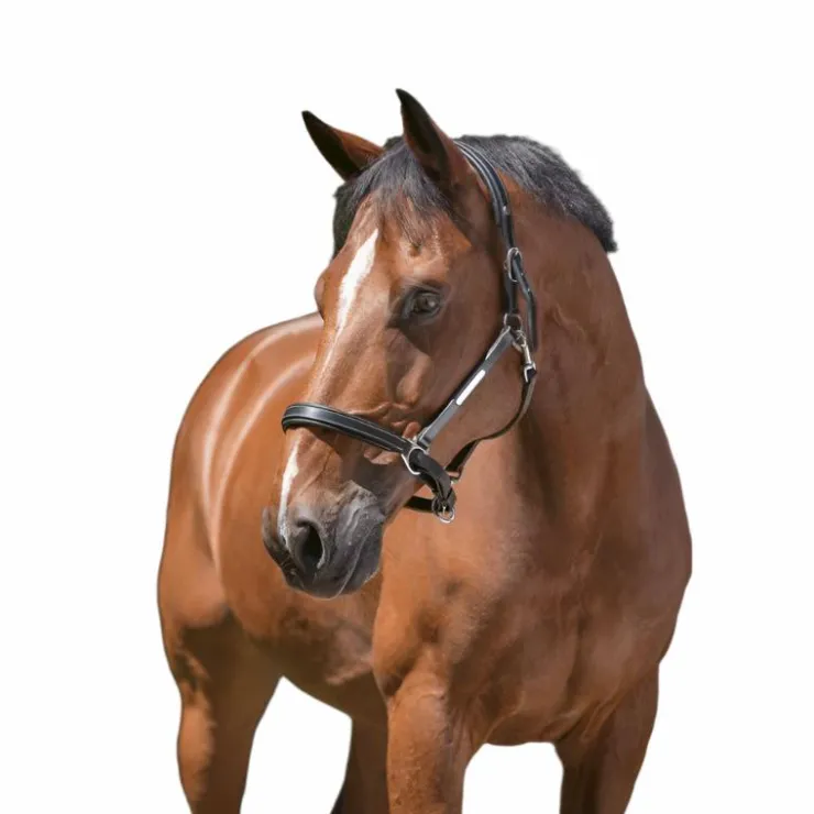 - Licol avec têtière et muserolle réglables, matelassées et doublées cuir ton sur ton avec surpiqûres blanches décoratives