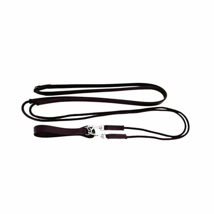 - Rênes allemandes, cuir avec corde, avec mousquetons.