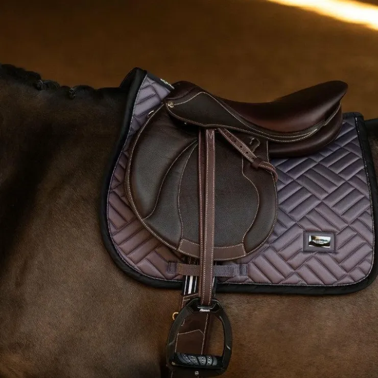 • Tapis de selle élégant avec un matelassage moderne de couleur Dark Violet