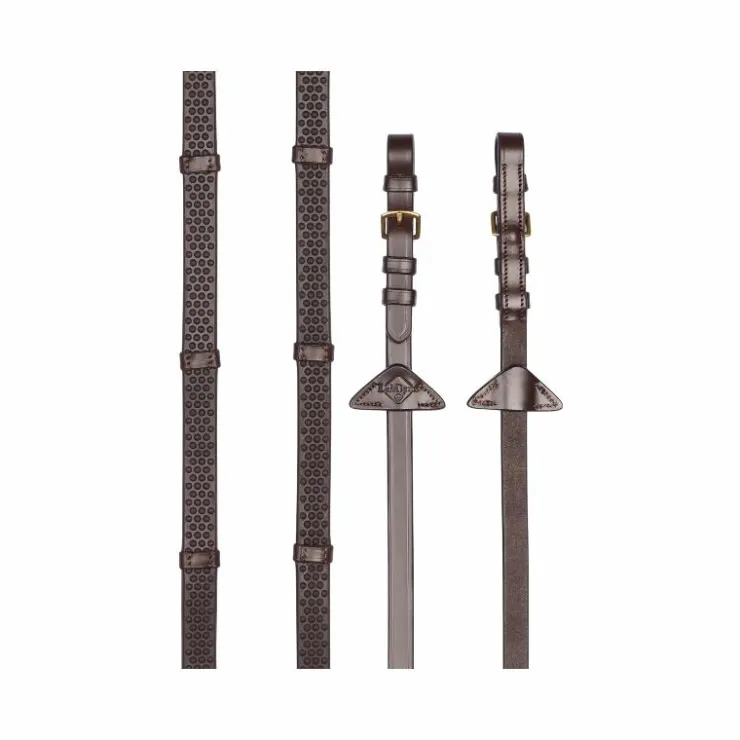 Online LeMieux – Rênes en caoutchouc souple avec arrêtoirs havane/ laiton Marron