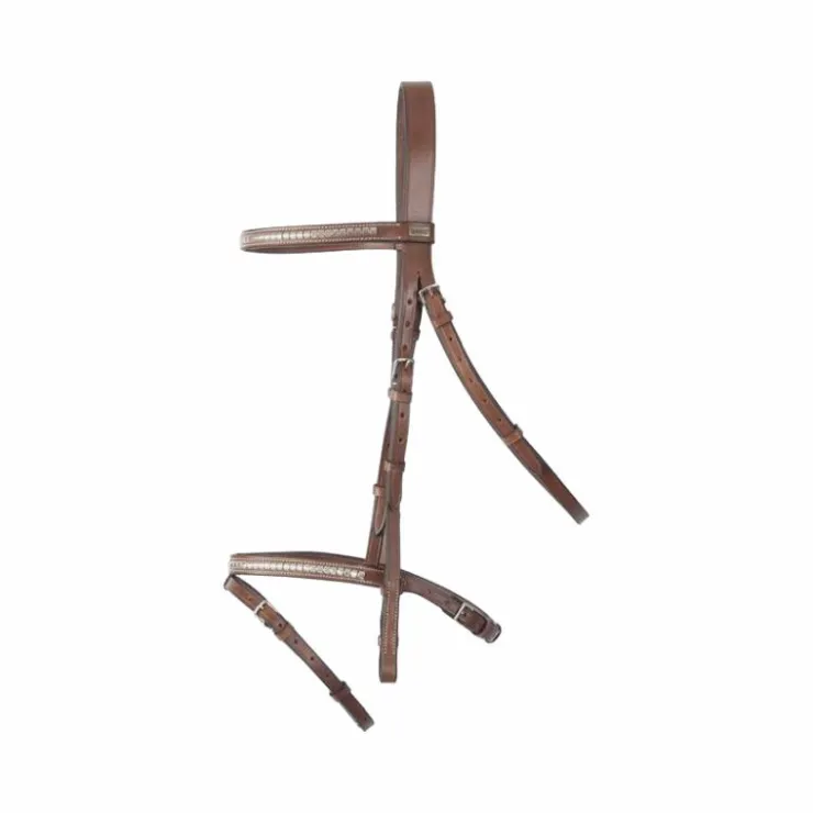 - Le frontal et la muserolle croisée sont doublés cuir. Il est livré avec des rênes caoutchouc gros picots