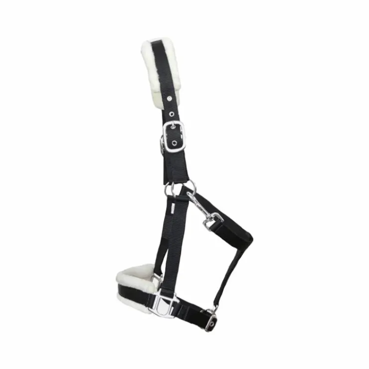- Licol en nylon avec doublure mouton synthétique sur la têtière et la muserolle.