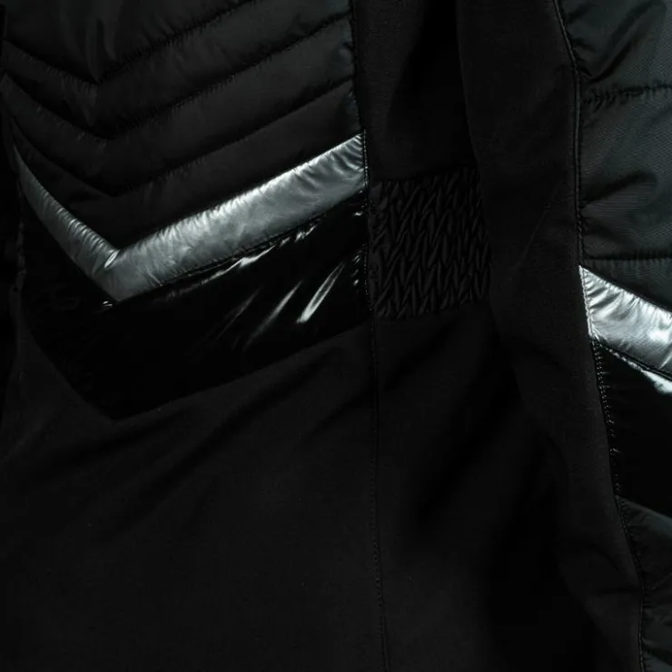 - Veste matelassée, ajustée et en tissu imperméable. Dessous de bras, côtés de la veste, col et bas du dos en tissu technique Soft-shell, pour une aisance maximale.
