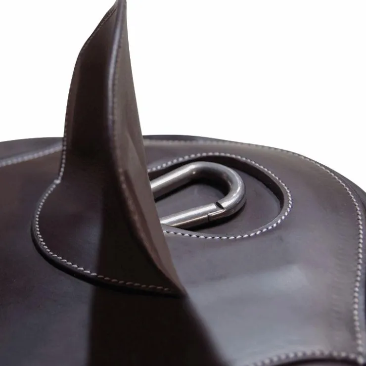 - 1 mousqueton central d’attache avec flap de protection magnétique en cuir