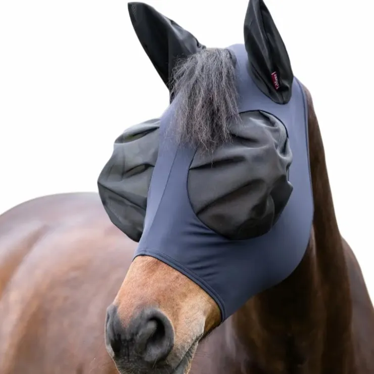 • Système à enfiler permettant de minimiser les frottements et empêcher les mouches de pénétrer sous le masque