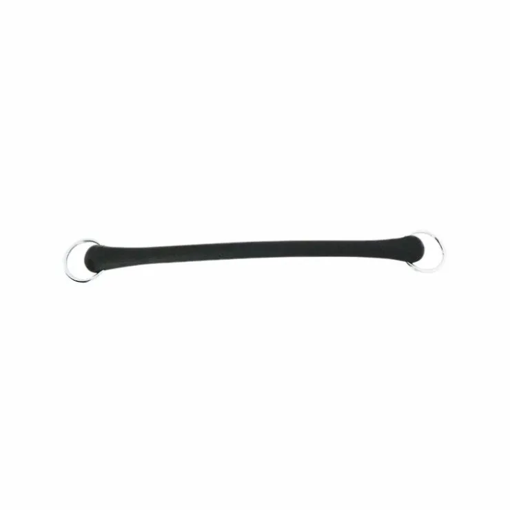 - Longe d’attache constituée d’un gros caoutchouc noir muni d’un anneau à chaque extrémité, sur lesquels vous pourrez fixer les mousquetons de votre choix (par exemple un mousqueton de panique pour fixer au licol et un mousqueton pompier pour fixer à l’anneau d’attache)