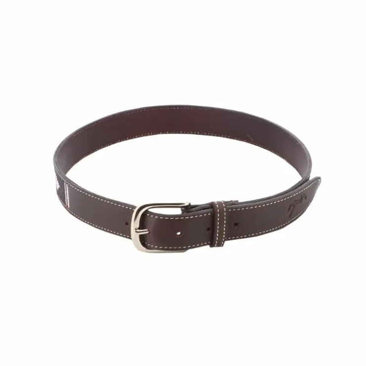 - La ceinture « Pearl » est faite d’insertions de perles cousues sur une base en cuir.
