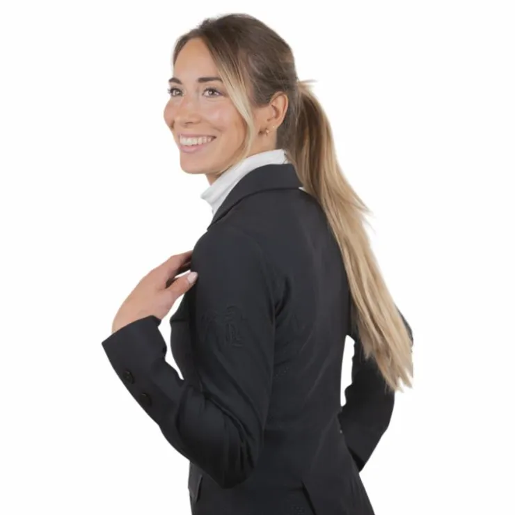 • Côtés de la veste ajourés pour maximiser la circulation de l’air et pour un meilleur confort de la cavalière