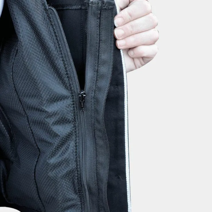 - La doublure airbag s’attache à la veste par l’intermédiaire de 2 fermetures à glissière à l’avant et 5 boutons pression autour du cou