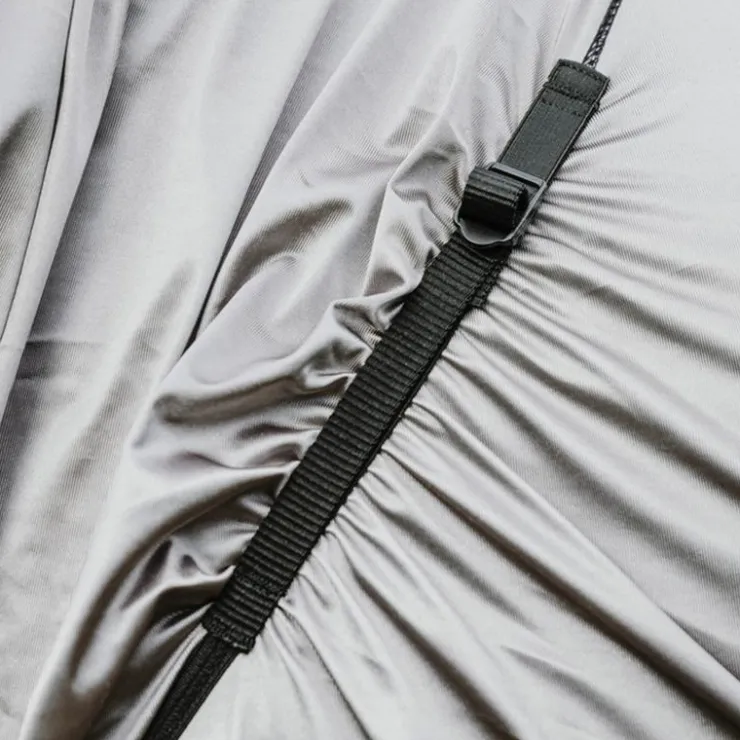 • Ajustement complet de la nuque à la queue, bandes élastiquées réglables et large sangle ventrale amovible type bavette