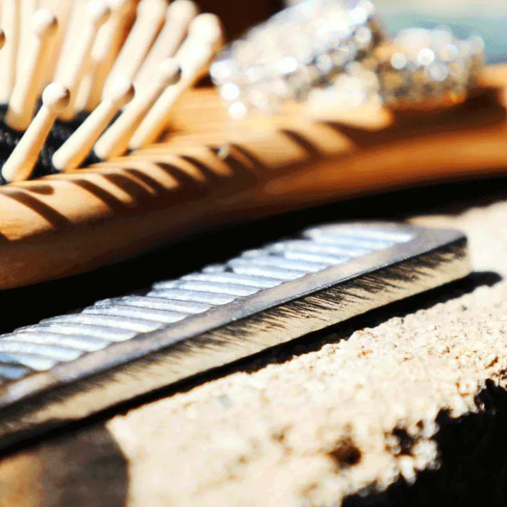 - Conseil pour natter avec des espacements égaux: entourer le peigne avec un élastique positionné à l’espacement souhaité