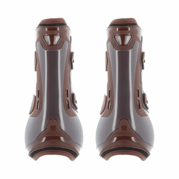 - La forme anatomique garantit un confort maximum et un positionnement parfait sur l’antérieur du cheval. Le matériau à double densité de la coque est associé à la mousse EVA, un matériau synthétique anti-choc particulièrement souple et élastique, et offre ainsi une protection véritablement absolue et un confort unique.